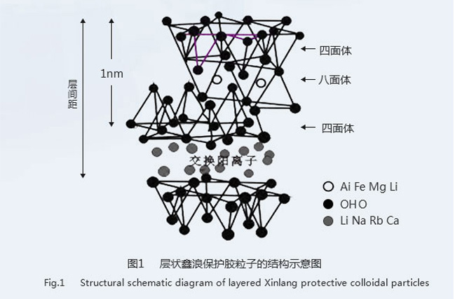 鑫浪多彩保護膠的化學(xué)結(jié)構(gòu)通式為Mx[LixMg6-xSi8O20 (OH)yF4-y](M=Na、Li),是一種無機硅酸鹽 層狀納米礦物材,屬于單斜晶系 。由硅-氧四面體和鎂-氧八面體在豎直方向上以 2∶1 的周期性排 列堆積而成,其分子結(jié)構(gòu)如圖 1所示。硅-氧四面體由一個Si 原子與四個 O 原子連接構(gòu)成,Si原子 在四面體的中心,四個 O 原子在四面體的四個頂角處;鎂-氧八面體中,鎂原子位于八面體的中心, 八面體頂點的氧原子還與相鄰的鎂原子組成另外的八面體。